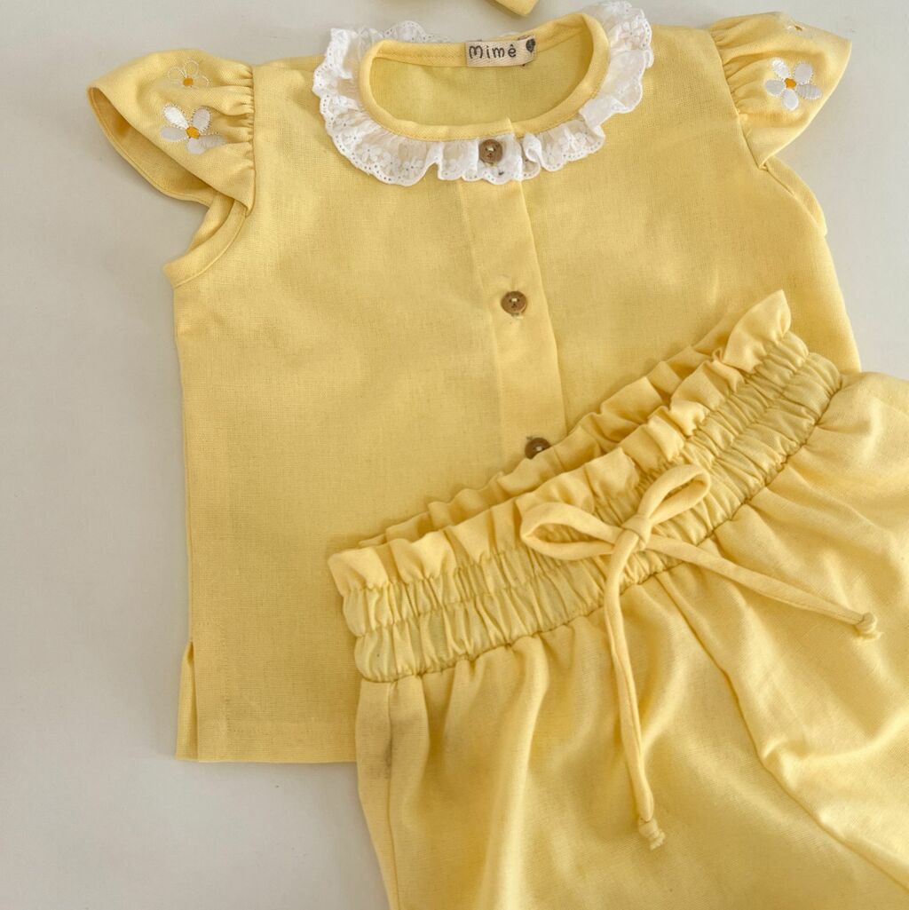 Com uma modelagem pensada para garantir liberdade de movimento, o Conjunto Margo é perfeito para as aventuras diárias das crianças. As mangas bordadas adicionam um toque especial, enquanto a rendinha delicada na gola oferece um charme único que vai encantar a todos.